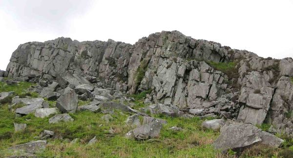 A collection of slabs and walls above Cwm Teigl